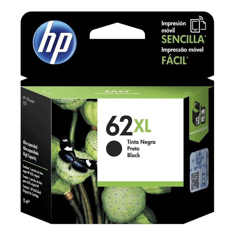 HP 62XL – 12 ml – Alto rendimiento – negro – original – cartucho de tinta – para ENVY 55XX, 56XX, 76XX; Officejet 200, 250, 57XX, 8040