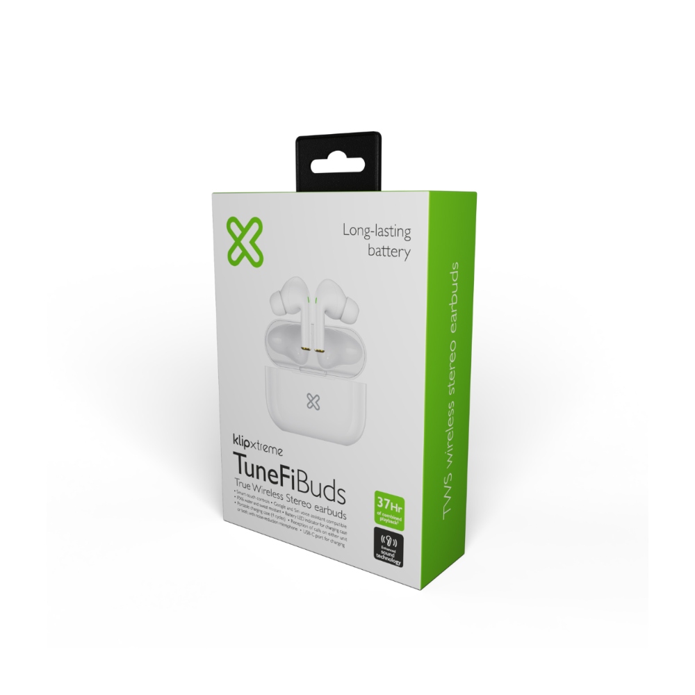Klip Xtreme – KTE-050WH – True wireless earphones – Para Home audio / Para Portable electronics / Para Tablet / Para Cellular phone – Wireless – Touch – 37Hrs White