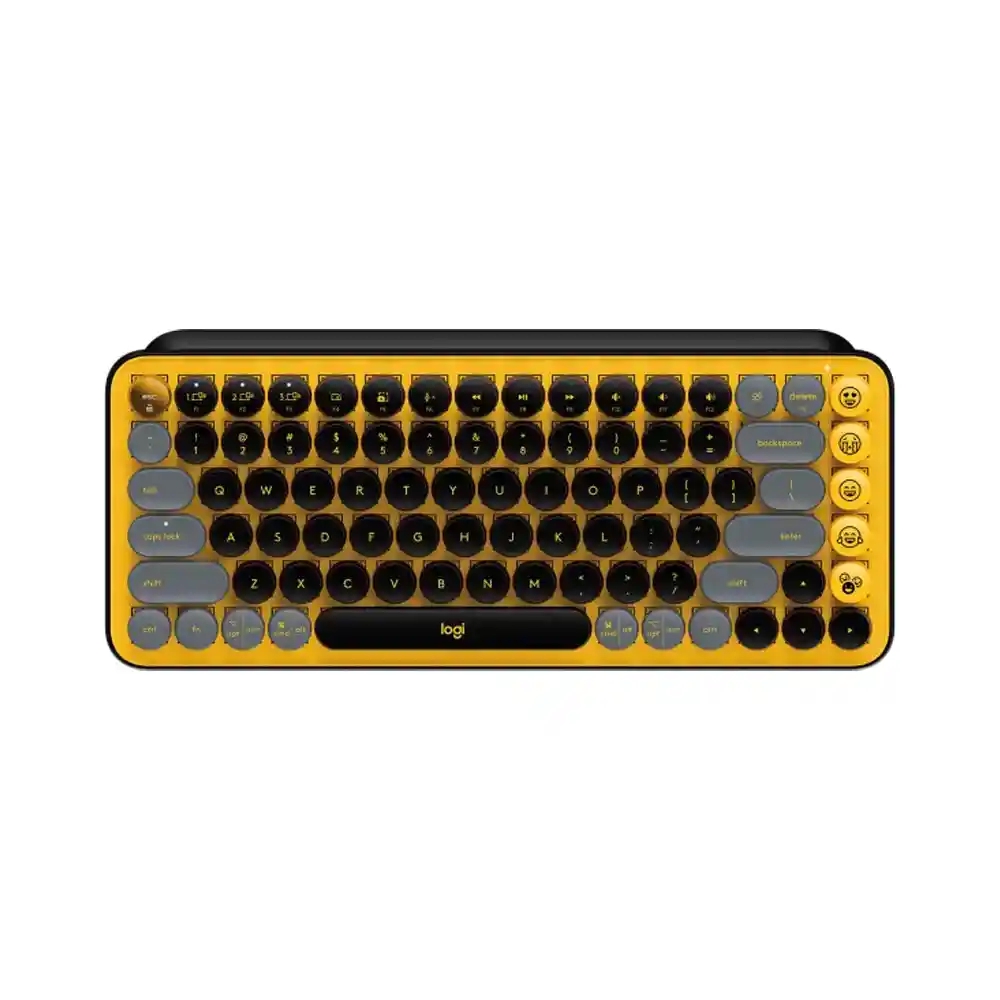 Logitech POP Keys – Teclado – Inalámbrico – Español – Bluetooth LE / Bluetooth 5.1 / Bluetooth – Diseño ergonómico – Amarillo