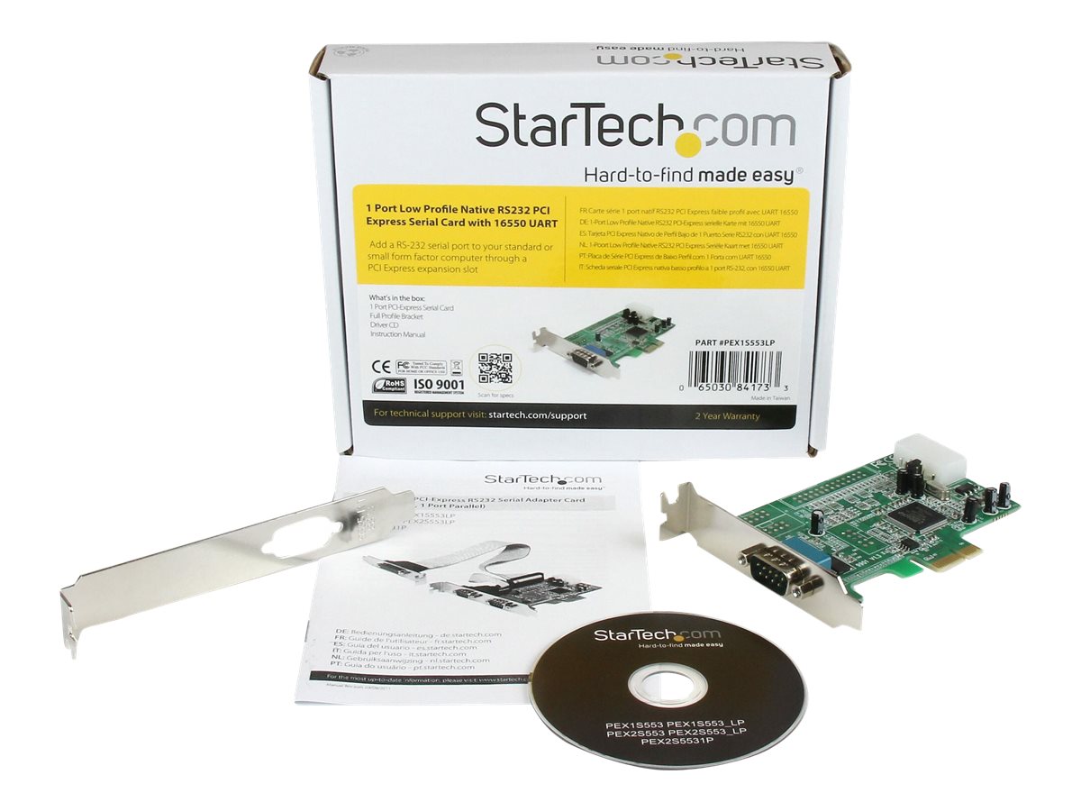 StarTech.com Tarjeta PCI Express Adaptadora Serie RS232 DB9 de 1 Puerto UART16550 – Tarjeta PCIe Controladora de Host Serial RS232 – Tarjeta de Expansión de Perfil Bajo – Windows y Linux (PEX1S553LP) – Adaptador serie – PCIe perfil bajo – RS-232